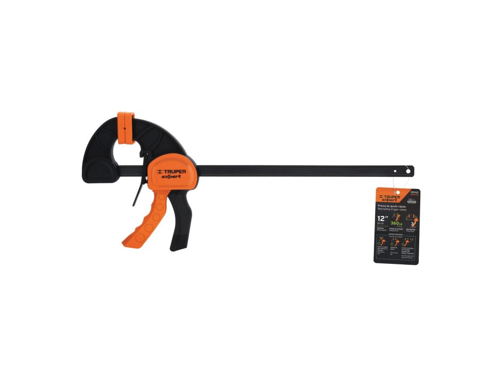 TRUPER Expert – Rýchloupínacia stolárska svorka PAR-212: profesionálna svorka s oceľovou lištou, nylonovým telom, rýchloupínacím mechanizmom a reverznými čeľusťami na upínanie aj rozperu.